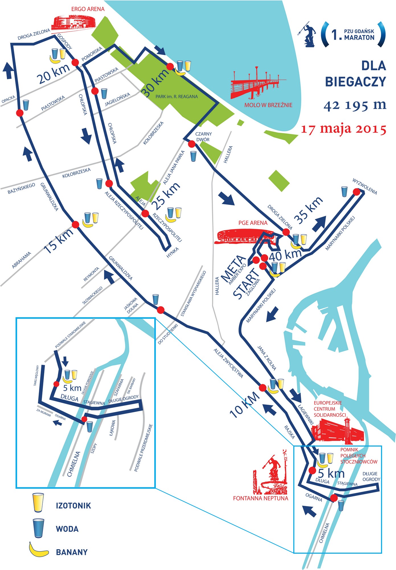- Jej przebieg to wyjątkowy wyróżnik nowej imprezy na biegowej mapie Polski. Wiedzie przez najbardziej charakterystyczne i atrakcyjne miejsca będące wizytówką Gdańska: przepiękną Starówkę z ulicą Długą, Długi Targ z Fontanną Neptuna, historyczny Pomnik Poległych Stoczniowców, wnętrze Europejskiego Centrum Solidarności, PGE Arenę, czy urokliwy Park Nadmorski im. R. Reagana. Całość sportowych zmagań rozpocznie i zakończy się w AMBEREXPO, Centrum Wystawienniczo-Kongresowym Międzynarodowych Targów Gdańskich - opisuje Grzegorz Pawelec z MOSiR w Gdańsku.