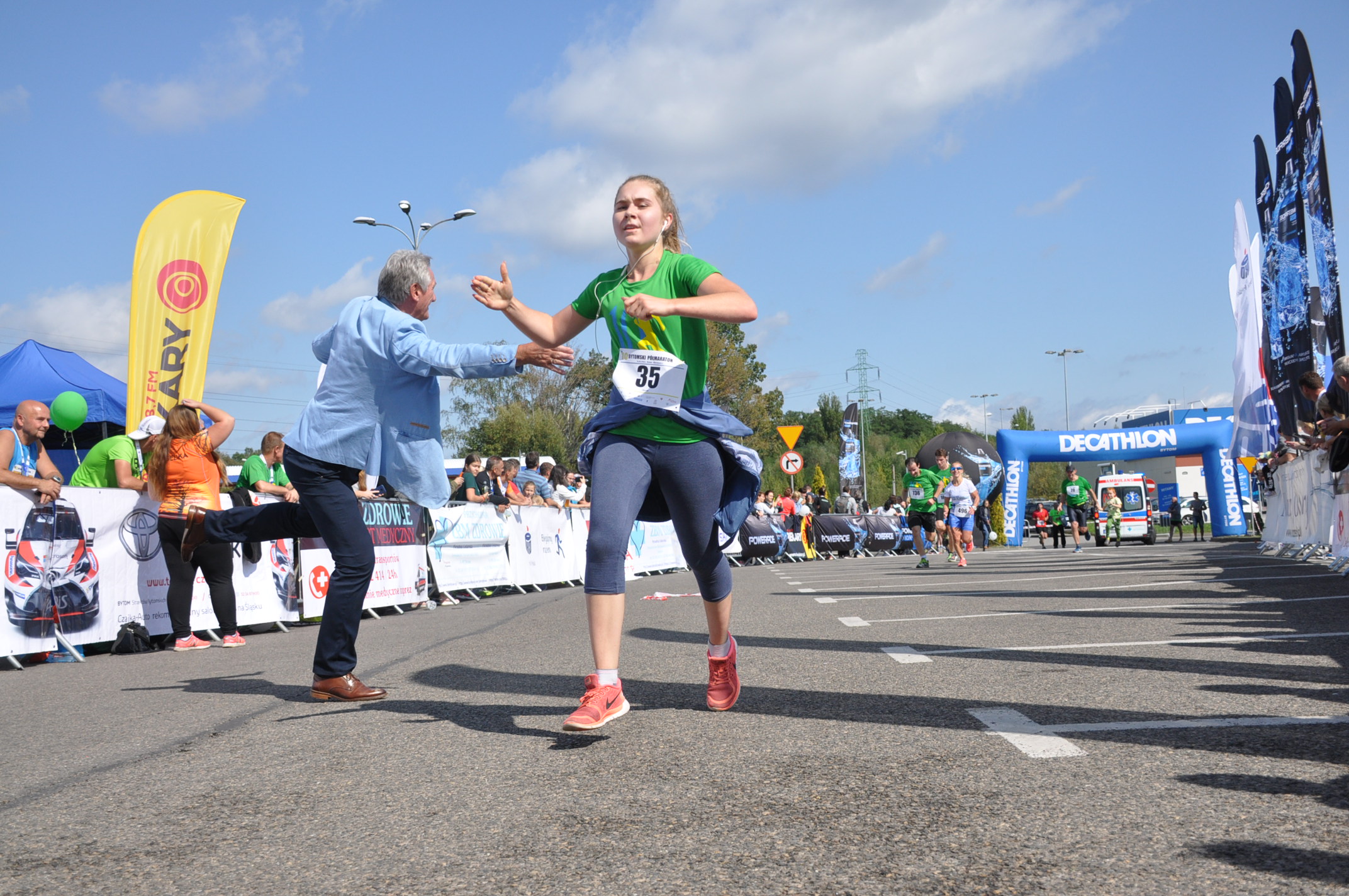 Marek Dworski w Bytomiu zaczynał swoją karierę biegową. Teraz ma na koncie setki startów, zagraniczne maratony oraz biegi 24 i 48 h: - W zawodach przebiegłem ponad 7 tysięcy kilometrów, treningowo co najmniej drugie tyle – pochwalił się. - Nie startowałem od pierwszej edycji Bytomskiego, bo wtedy jeszcze moją pasją był rower. Ale tutaj zacząłem. Podoba mi się, że tutaj są konserwatywni, tak pozytywnie. Jedynie start był gdzie indziej, ale zmiana jest dobra. Potencjał tutaj jest duży. Aż szkoda, żeby nie stworzyć tutaj maratonu – podsumował, odgadując intencje dyrektora biegu Michała Napierały, który nosi się z takimi planami. Dzisiaj, jak co roku, przybił ponad tysiąc piątek na mecie swojego biegu, starając się powitać każdego osobiście.