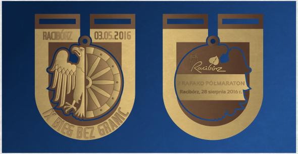 Na uwagę zasługuje również medal. Tym razem nie będzie to tradycyjny krążek, ale medal łączony, składający się z dwóch części. Złożony w całość będzie przedstawiał herb miasta. Zewnętrzną cześć (tarczę) zawodnicy otrzymają finiszując w majowym IX Biegu bez Granic. Kolejną część (połowę orła) zdobędą, gdy pokonają dystans 2. RAFAKO Półmaraton Racibórz. Ukończenie obu biegów pozwoli skompletować oryginalny, pamiątkowy medal.