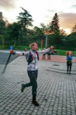 W regulaminowym limicie do mety dotarło jedynie 2 biegaczy. Najszybciej zrobił to Bartłomiej Karabin - zwycięzca m.in. Kieratu i Wielkiej Izerskiej Wyrypy (na zdjęciu - wbiega na metę). W Szczyrku pojawił się ponownie po 56 godzinach, 12 minutach i 27 sekundach