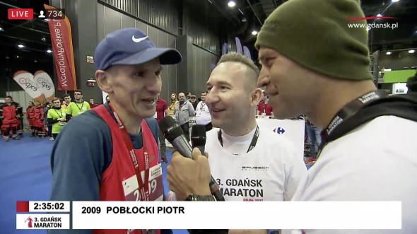 Wysoko biegł także Piotr Pobłocki, który w Gdańsku celował w kolejny rekord świata weteranów. Maratoński debiut notowała z kolei młodsza z córek pana Piotr - Katarzyna.