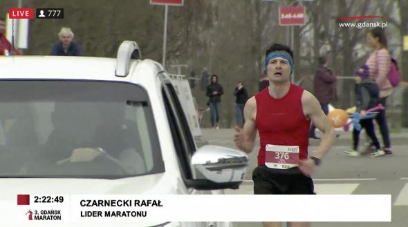 2:20:19 to czas Rafała Czarneckiego na 41. kilometrze - tylko kataklizm mógł odebrać biegaczowi zwycięstwo. Nic takiego się nie stało - do mety w hali AmberExpo dotarł niezagrożony, z szerokim uśmiechem na ustach. Czas na mecie 2:24:32 - to nowy rekord życiowy zawodnika z Bliżyna!