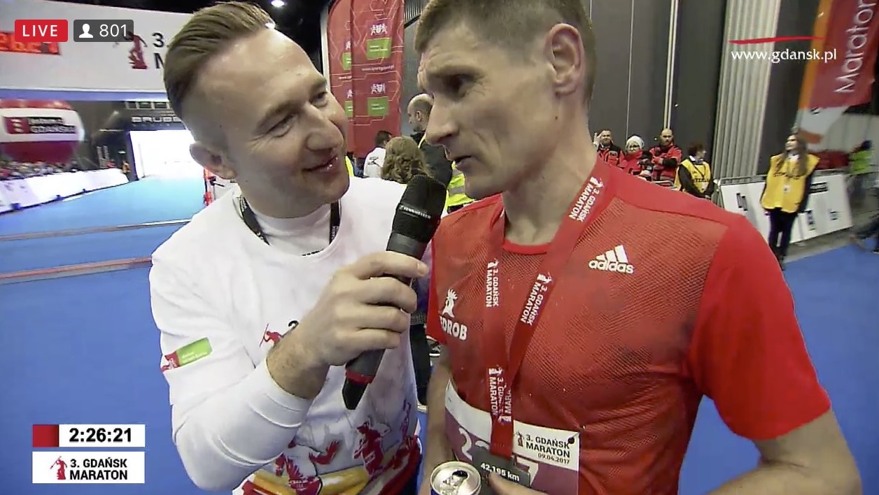 2:20:19 to czas Rafała Czarneckiego na 41. kilometrze - tylko kataklizm mógł odebrać biegaczowi zwycięstwo. Nic takiego się nie stało - do mety w hali AmberExpo dotarł niezagrożony, z szerokim uśmiechem na ustach. Czas na mecie 2:24:32 - to nowy rekord życiowy zawodnika z Bliżyna!