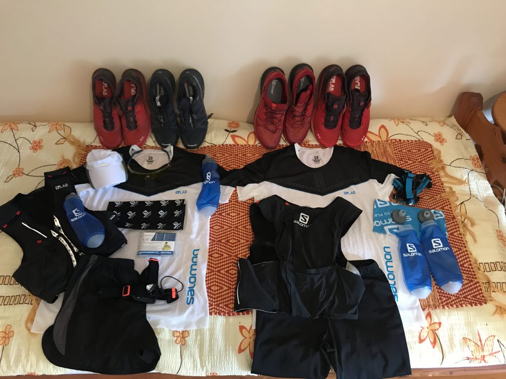 Zacznijmy od najważniejszego – obuwie! Mieliśmy okrooooopny dylemat, które buty ubrać na start a które zdeponować w przepakowych workach. Postanowiliśmy, że mimo dużej ilości błota i płynnej gliny na trasie startujemy w Salomonach S/LAB ULTRA 2, które na dwa miesiące przed startem do testowania podesłał nam Salomon. Każdy z nas dodatkowo miał po 2 pary butów jako obuwie rezerwowe zapakowane w worki na przepakach. Zestaw Łukasza to: przepak Cisna: buty Kalenji Kiprun Trail MT, przepak Smerek: Salomon Sense Ride GTX Invisible Fit. Zestaw Pawła to: przepak Cisna: Salomon Speedcross 4 Gtx Race , przepak Smerek: Kalenji Kiprun Trail XT6. Skoro jest taka możliwość to czemu z niej nie skorzystać, prawda? Plecak – i kolejna zagwozdka. Rozważaliśmy dwie opcje. Podobnie jak z butami, w grę wchodził plecak testowany przez nas dla bydgoskiego Decathlonu – model Kalenji 10L oraz przesłany na dwa tygodnie przed Biegiem Rzeźnika od Salomona – model S/LAB SENSE ULTRA 8 SET. Oba wzięliśmy oczywiście do Cisnej. Pogoda zdecydowała za nas.