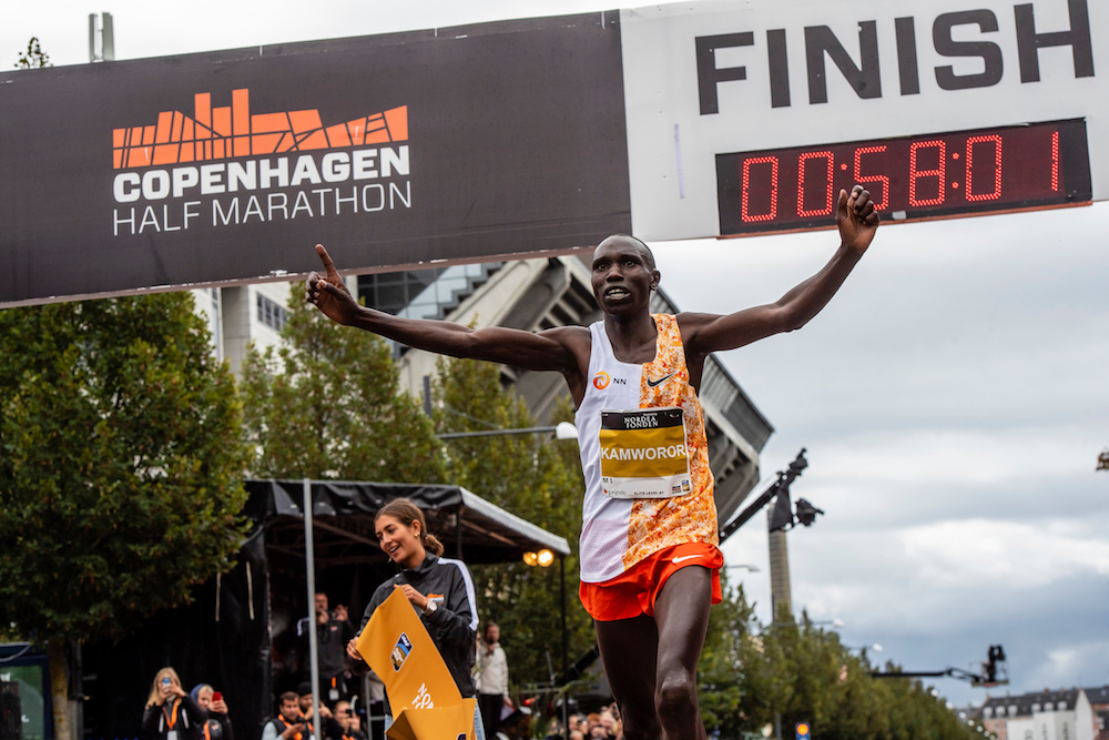 Chociaż wiele się mówi o próbie złamania dwóch godzin w maratonie, to dziś mogła paść inna mityczna bariera w biegach ulicznych. W Kopenhadze Kenijczyk Geoffrey Kamworor ustanowił nowy rekord świata w półmaratonie czasem 58:01!