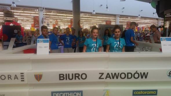 Trudno mu się dziwić, bo w biurze czeka gotowa do działania grupa wolontariuszy w koszulkach biegu. Wydawanie numerów startowych przebiega bardzo sprawnie, wydzielono osobne stanowiska dla startujących na poszczególnych dystansach w biegu oraz nordic walking. Wszyscy otrzymują taki sam pakiet.