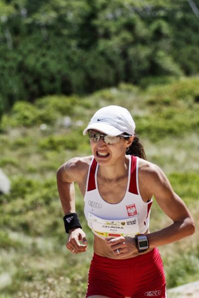 Ania Celińska rozpoczęła spokojnie. Na pierwszym punkcie kontrolnym, na 6,92 km, na wysokości 2682 m była na 11. miejscu. Na następnym punkcie – 12,23 km (3099m) zajmowała 10. lokatę, wyprzedzając po drodze Nowozelandkę Annę Frost. Potem przyszła kolej na Włoszkę Ivanę Iozzię, która, w zeszłorocznych mistrzostwach w Szklarskiej Porębie prowadziła przez znaczną część dystansu.