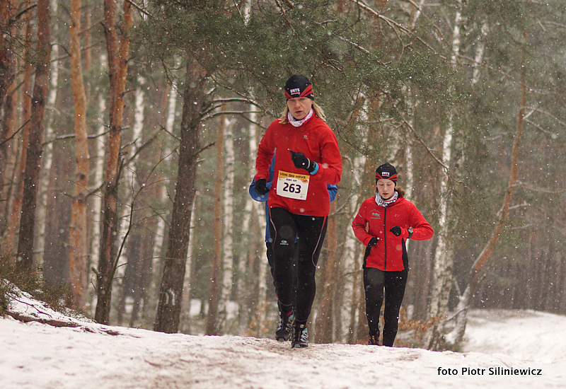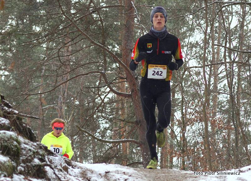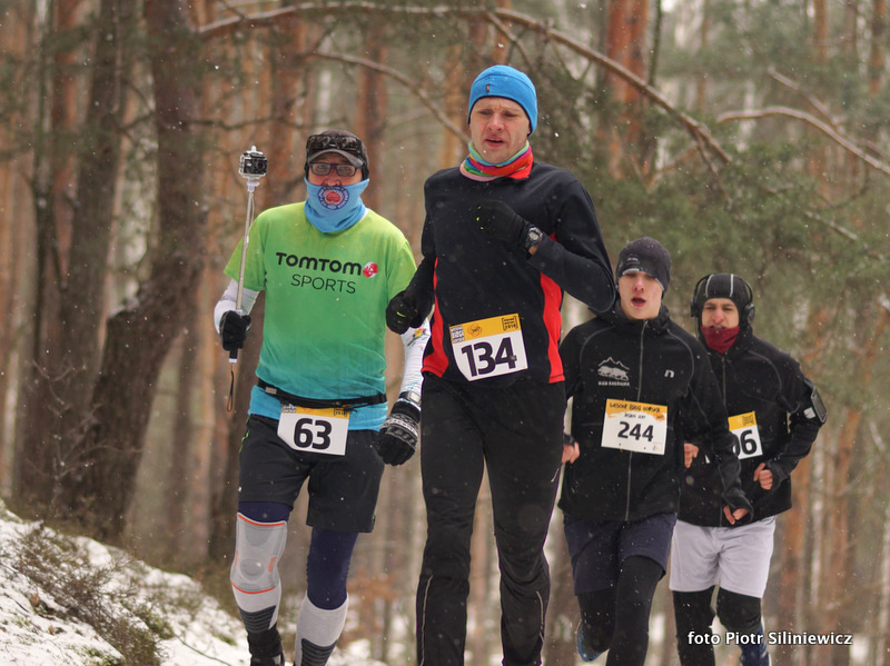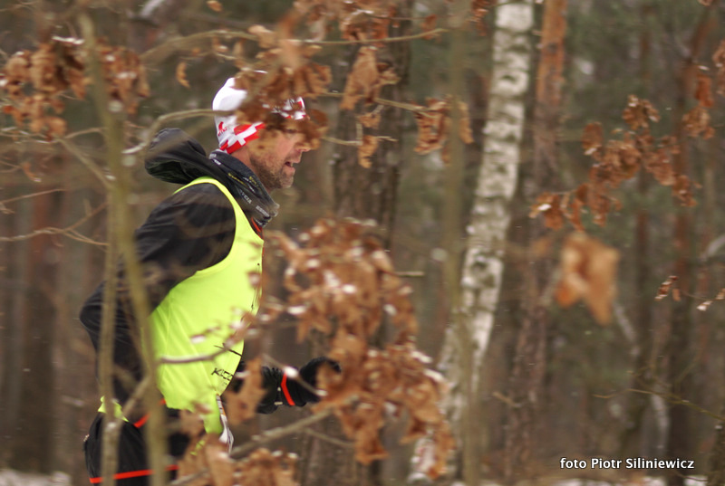 Wydmy w Mazowieckim Parku Krajobrazowym były po nocno-porannym opadzie ośnieżone, można było jednak obejść się bez kolców, buty terenowe nie ślizgały się po podłożu. W 7-stopniowym mrozie Janek Bednarski nie miał rywali w walce o zwycięstwo.