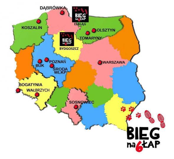 Lokalizacje poszczególnych schronisk biorących udział w akcji Bieg na 6 Łap: TUTAJ