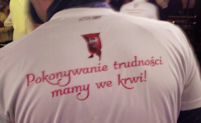 Biegliśmy z flagami, z rozetkami przypiętymi do piersi, ubrani w oryginalne koszulki. Na trasie sporo kibiców, miasto rozświetlone, nic tylko podziwiać i biec ku czci bohaterów tamtych dni.