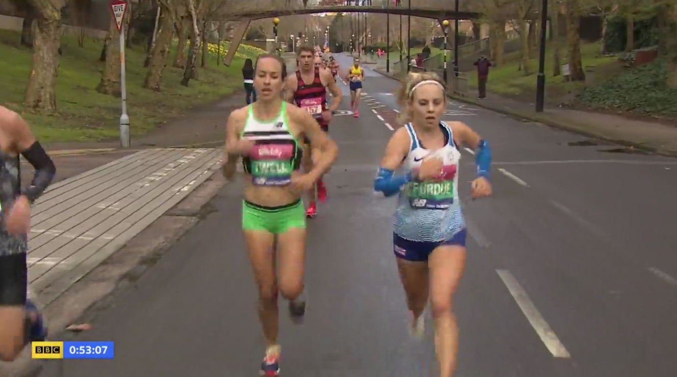 W rywalizacji pań przewaga Charlotte Purdue była wyraźniejsza, choć najgroźniejszą rywalkę Brytyjka wyprzedziła dopiero ok. 4-5 km przed metą.