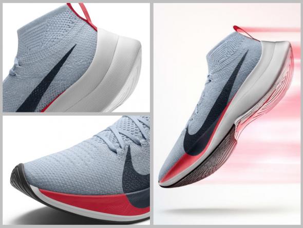 Nowy model Nike jest ultra lekki (dzięki piance ZoomX, mają ważyć 185 gramów) i ultra elastyczny, a przy tym maksymalizuje aerodynamikę. Został zaprojektowany tak, aby dać 85 proc energii zwrotnej i zminimalizować napięcie ścięgna Achillesa. Obuwie ma też niski profil (21 mm w śródstopiu). Jak szacuje Nike, w Zoom Vaporfly Elite można poprawić wynik nawet o 4 minuty.