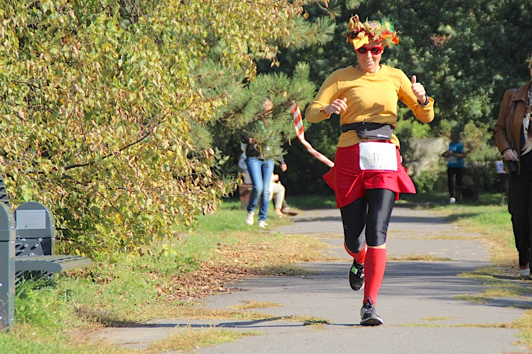 Bez walki o wynik, za to w fantazyjnym przebraniu pobiegła dziś Agnieszka Forzpańczyk. Lubię takie zabawy – opowiadała – np. niedawno na Łowickim Półmaratonie Jesieni biegłam jako „podrabiana” łowiczanka w tamtejszym ludowym stroju, chociaż jestem z Łodzi. Dziś natomiast wystąpiłam jako Pani Jesień. Co się nie dobiega, to się dowygląda! – zakończyła ze śmiechem.