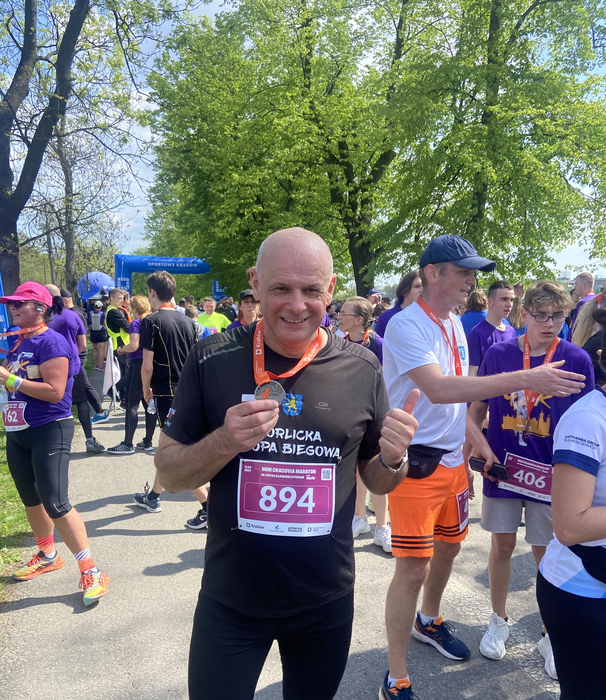 - Bieg ciągnął się pięknym sznurem wokół krakowskich Błoni. Kenijczycy od razu narzucili tempo i prowadzili do końca. Panowała wspaniała atmosfera, dopisała też pogoda. Miło było spotkać nie tylko na trasie, ale także w biurze zawodów wielu znajomych biegaczy, którzy odbierali pakiety na bieg nocny i maraton, a wśród organizatorów tej prestiżowej imprezy nie zabrakło też osób z powiatu gorlickiego, mam tutaj na myśli Patryka Korzenia, który powitał mnie na mecie z medalem. Międzyczasie plany się zmieniły i w biegu nocnym nie udało się pobiec. Pozostały wspaniałe wspomnienia i piękne zdjęcie. Warunki w tym dniu dla fotografów były idealne – podkreśla Marek Podraza.