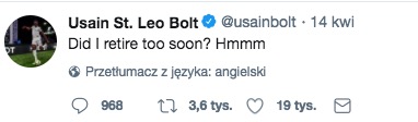 — Usain St. Leo Bolt (@usainbolt) 27 lutego 2018