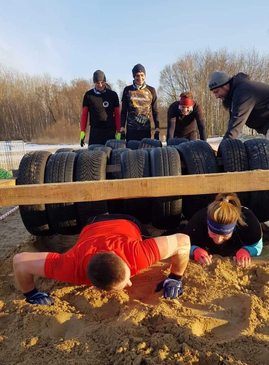 Jeśli okazało się, że jakaś przeszkoda była dla uczestnika nie do pokonania - nie ma problemu. W zamian pompki, przysiady itp. Ogromny plus, że przy każdej przeszkodzie stał wolontariusz który instruował jak pokonać przeszkodę oraz pilnował poprawności wykonania i bezpieczeństwa.