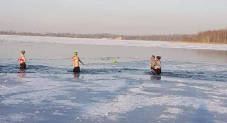 Wisienką na torcie był ok 150-metrowy spacer w lodowatej wodzie Pogorii.