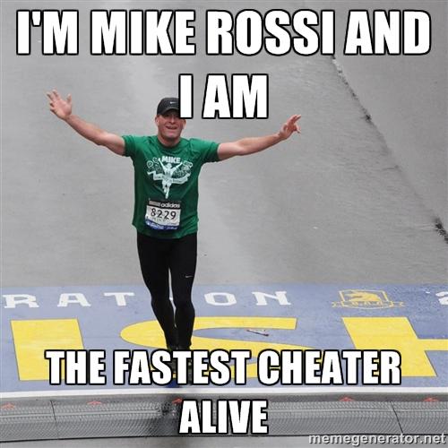 Były też inne wyzwania - 10 tys. dolarów za złamanie 20 minut na 5 km (oficjalna życiówka Rossiego to 21:52, równie kwestionowana co sam wynik maratoński) czy 10 tys. dolarów za wynik 3h25' w maratonie (czas dający kwalifikację do Boston Marathon w kategorii wiekowj Rossiego). Mike Rossi nie podjął wyzwania. A LetsRun.com ogłosił oficjalnie - Mike Rossi oszukiwał.