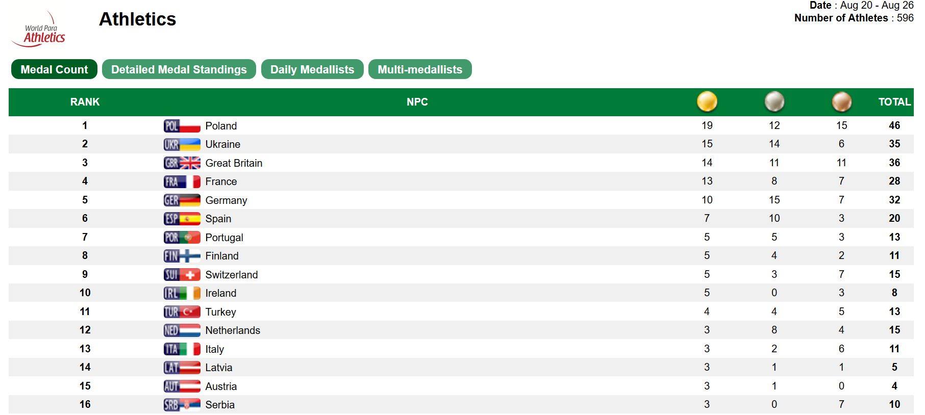 Polska prowadzi w klasyfikacji medalowej mistrzostw: