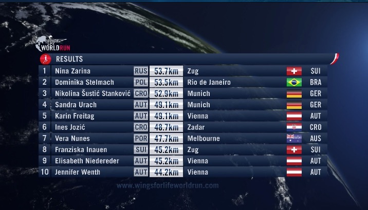 Globalnej rywalizacji kobiet przewodziła wciąż Dominika Stelmach, ale niespodziewanie blisko – w ujęciu pokonanego dystansu - w szwajcarskim Zug biegła Rosjanka Nina Zarina. W grze była jeszcze młoda Chorwatka Nikolina Sustic Stankovic ale ona jako pierwsza z finałowej trójki zawodniczek została złapana przez samochód pościgowy.
