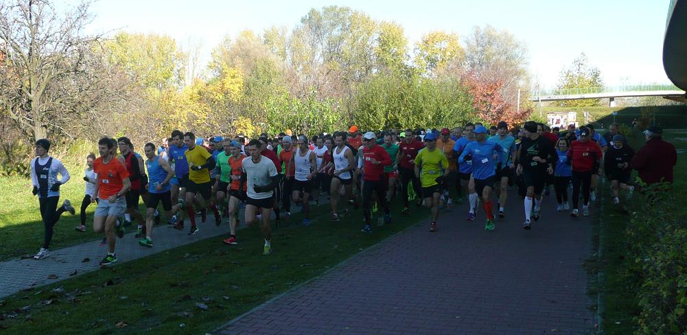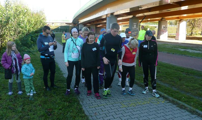 Zupełnie niepotrzebnie, bo już po kwadransie przed puntami rejestracji zaczęły się ustawiać kolejki. Jak się później dowiedzieliśmy od samych zawodników, mocno jesienny poranek zachęcił wielu do dłuższego niż zwykle pozostania w łóżkach. Ostatecznie na ul. Gwintowej 3 zameldowało się 259 biegaczy. Nie zabrakło też osób, które startowały w cyklu po raz pierwszy, w tym kilkoro spoza Warszawy, a nawet z... Włoch. Ale nie tych stołecznych. Wielu dołączyło do akcji sponsora imprezy pn. "Biegam dla..." , która tym razem dedykowana była Pawłowi i Weronice.