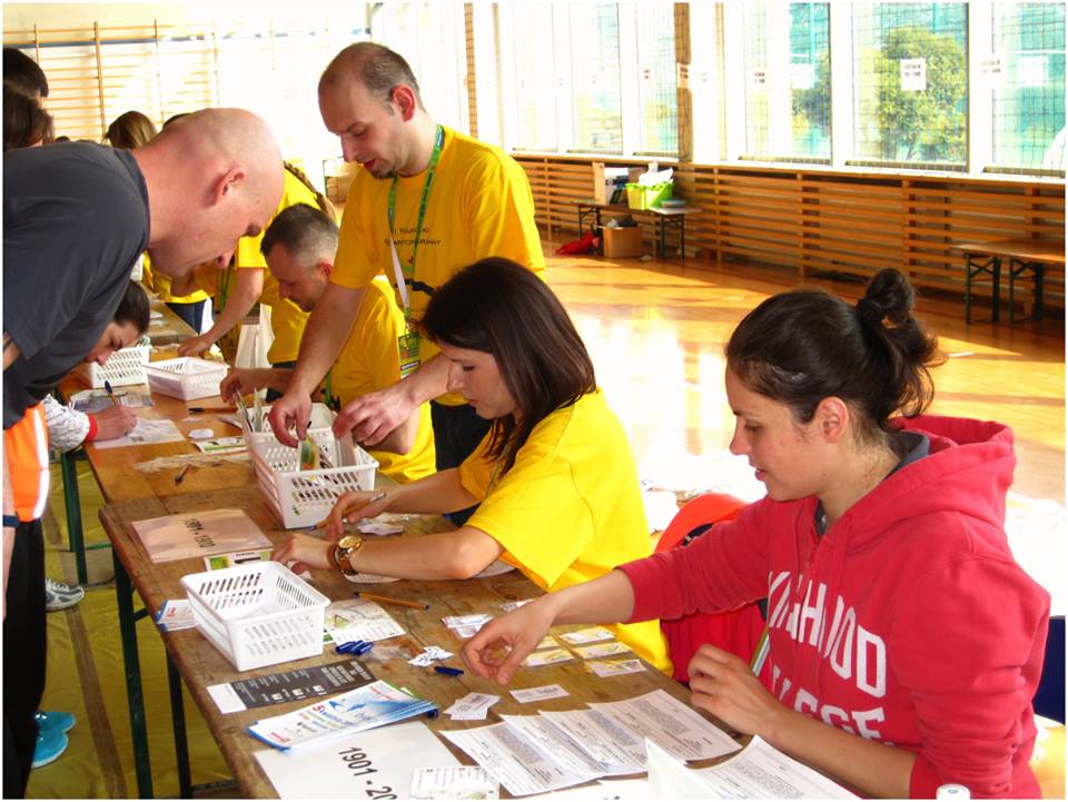 Niepołomiccy biegacze nie tylko biegali w Półmaratonie Marzanny. Pokaźna grupa zaangażowana była w pomoc przy biegu jako wolontariusze. Można ich było spotkać w biurze zawodów oraz na punktach z wodą. To także nowe ciekawe doświadczenie.