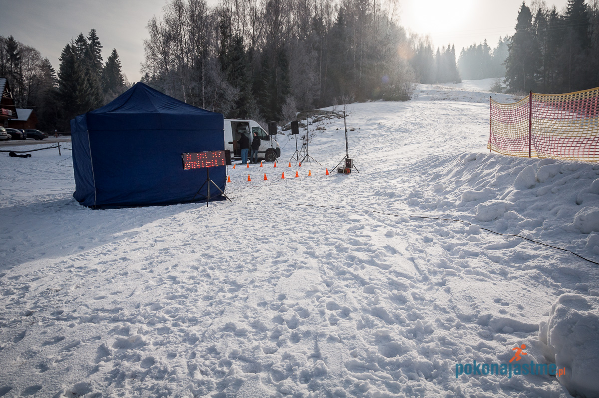 Tutaj muszę pochwalić organizatorów za to, iż 20 cm warstwa świeżego śniegu została przetarta wcześniej przez quady. Dzięki temu, szanse na udany, a przede wszystkim bezpieczny dzień, miał każdy. Cała trasa była bardzo dobrze oznakowana za pomocą taśm, znaków, a także pomarańczowych strzałek namalowanych na śniegu.