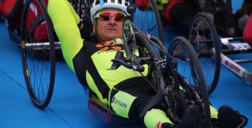 Dwie minuty przed startem 15. Cracovia Maraton, na trasę półmaratonu wyruszyli kolarze ręczni. O poranku na trasie ciągle jeszcze stały kałuże po nocnym deszczu.