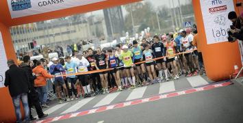 Biegacze wystartowali punktualnie o godzinie 10:00 sprzed budynku AmberExpo.