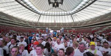 Takiej imprezy stolica i cała Polska jeszcze nie widziała. Po marcowym Półmaratonie Warszawskim poprzeczka została podniesiona bardzo wysoko. Wokół Stadionu Narodowego na błoniach powstało wielkie miasteczko biegaczy, z szatniami, przebieralniami , prysznicami punktami wydawania napojów i bananów, Nie zapomniano o części artystycznej - jest nagłośnienie, ekrany i scena.