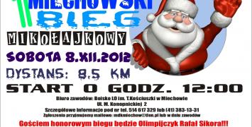 Do coraz liczniejszych biegów mikołajkowych dołącza w tym roku także Miechów k. Krakowa. Tutaj 8 grudnia w samo południe wystartuje I Miechowski Bieg Mikołajkowy na dystansie 8.25 km. Start biegu odbędzie się na boisku liceum ogólnokształcącego przy ul. M. Konopnickiej 2 w Miechowie. Biuro zawodów będzie czynne w sobotę 8 grudnia w godzinach 9.00-11.45 W biegu nie ma opłaty startowej.