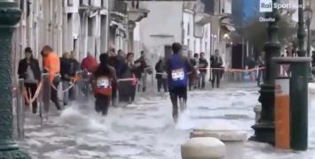 Wenecja słynie ze swoich kanałów, gondoli, wodnych dróg komunikacji i ponad 400 mostków, które pozwalają się po niej poruszać suchą nogą. Woda w Wenecji nie jest niczym niezwykłym, jednak tym razem jej poziom był na tyle wysoki, że zakłócił rywalizację biegaczy.