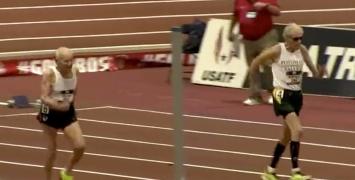 Biegowy świat podbija nagranie z finału biegu na 60m mężczyzn Halowych Mistrzostw USA Weteranów. O tytuł czempiona walczyło tylko dwóch zawodników, ale jakież to były emocje!
