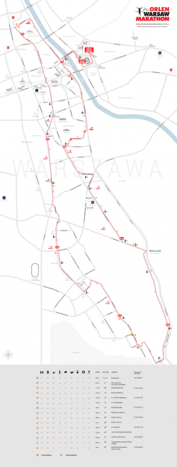 21 metrów. To będzie dobre miejsce na odpoczynek oraz nabranie odpowiedniego tempa biegu na nadchodzący płaski dystans o długości 20 kilometrów, który doprowadzi do mety. Następnie trasa będzie przebiegać m.in. Aleją Wilanowską i ulicą Jana III Sobieskiego. Ostatnie kilometry biegu zostaną poprowadzone ulicą Czerniakowską i Solec, która doprowadzi zawodników do dzielnicy Śródmieście oraz do Mostu Świętokrzyskiego – tym razem do jego południowej nitki. Brama mety ORLEN Warsaw Marathon oraz Miasteczko Biegaczy jak co roku zlokalizowane zostaną na błoniach Stadionu Narodowego.