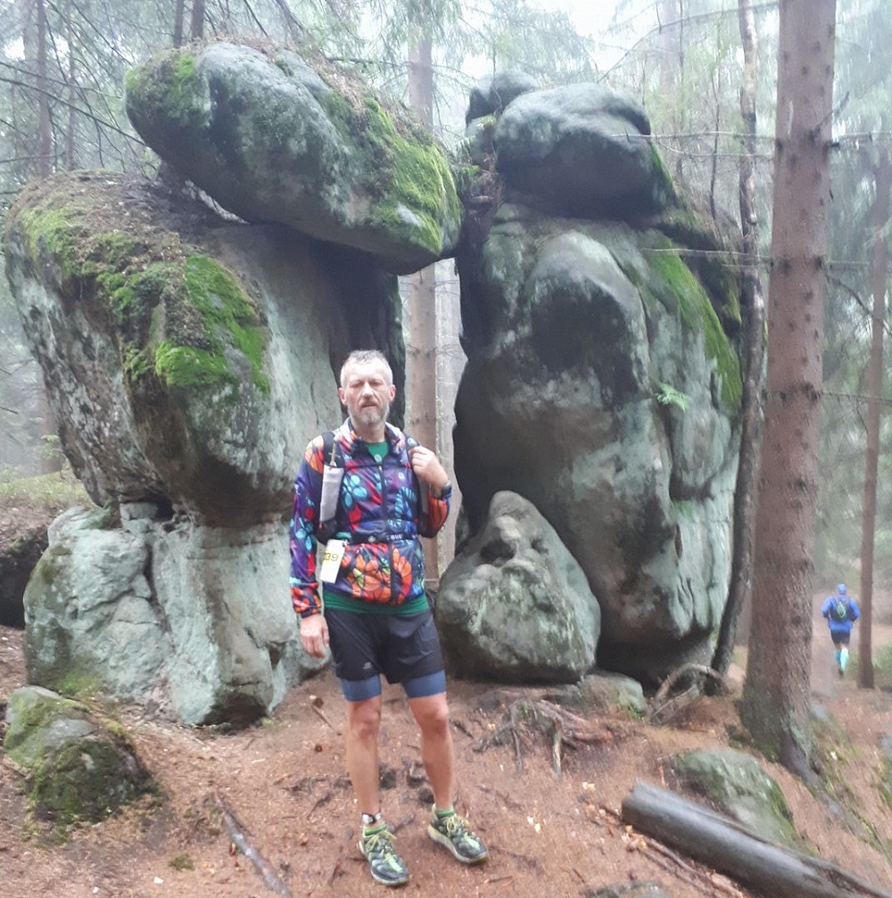 Start w piątek o 6 rano, jeszcze ciemno. Obudził mnie… deszcz. I to solidny. Cholera! Na szczęście potem zelżał, padał, ale nie był uciążliwy, a mokrych skał się nie bałem, bo na nich moje hoka speedgoaty czują się jak ryba w wodzie. Na 81 km przeznaczyłem 12 godzin. Choć nie spieszyłem się zbytnio i starałem nie eksploatować, do półmetka biegłem na 10:30. Druga część była jednak trochę trudniejsza (podejście na Błędne Skały), znacznie bardziej upierdliwa (piękny, ale paskudny do biegania labirynt między skalnymi blokami), no i nie miałem ciśnienia. 11:48 na mecie przyjąłem więc z zadowoleniem. W stawce ogólnej biegu, miejsce w samym środeczku - 56/118, w Challenge’u trochę lepiej, 14/36.