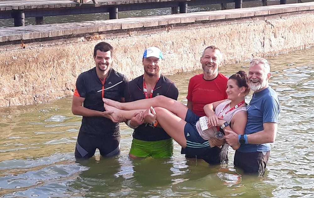 Na mecie – powtórka z „bielawowej” rozrywki: półgodzinne krio w zalewie, krótki spacerek i jedzenie. Tylko chemii już nie brałem, bo przed niedzielnym biegiem na 24 km nie wydawała mi się konieczna. Krótki dystans miał być najłatwiejszy, zlecieć jak z bicza strzelił.