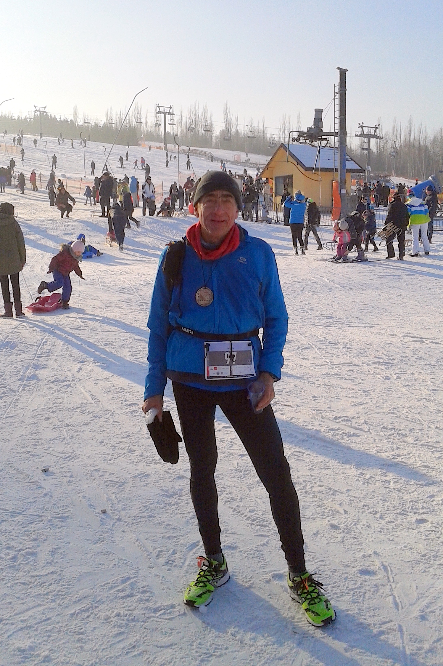 Piątego lutego z kolegom Andrzejem pojechałem pod Łódź na zawody górskie. Dojazd z Warszawy zajął nam niecałe dwie godziny. Przywitała nas mroźna pogoda, około minus 10 stopni Celsjusza, bezchmurne niebo i wschodzące nad horyzontem słońce. W miarę jak słońce się podnosiło, rosła też temperatura – relacjonuje Jan Nartowski, Ambasador Festiwalu Biegów.