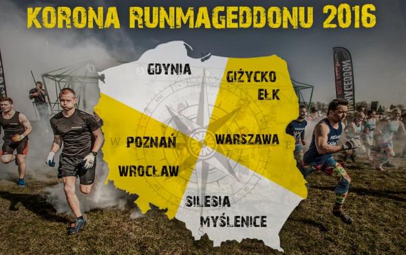 Aby zdobyć Koronę Runmageddonu trzeba ukończyć co najmniej jeden z eventów Runmageddon w każdej ze stron świata. Zmagania potrwają do 6 listopada. Czekają następujące lokalizacje: