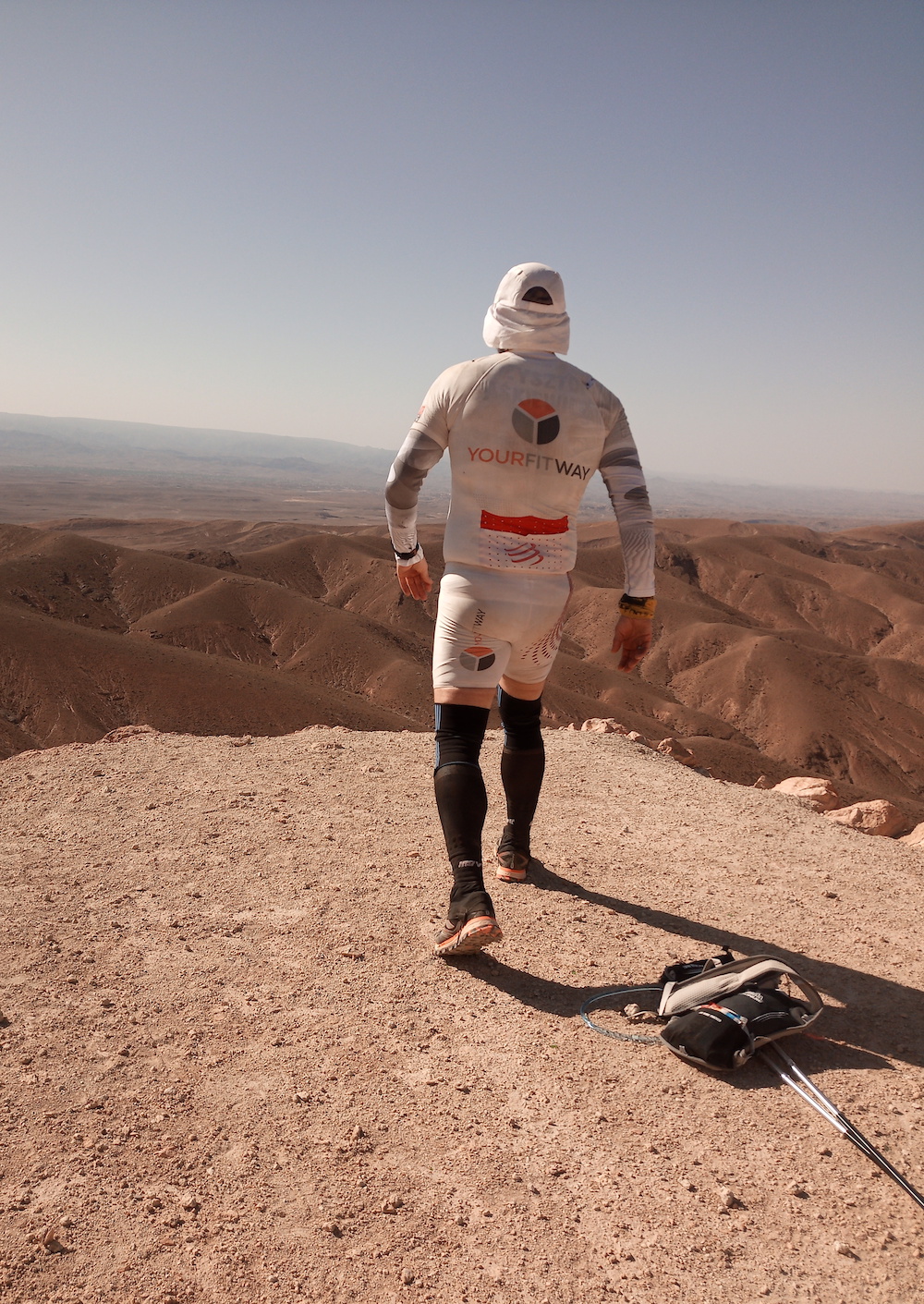 Etap 1 to Erg Chebbi, czyli pustynia kamienista z trudnymi podbiegami i pięknymi widokami. Nie zdawałem sobie sprawy, że pustynia to nie tylko piasek. Trasa była trudna technicznie a temperatura odczuwalna 40 stopni nie pomagała. Drugi etap zaczynał się koło 5 rano i pozwalał zobaczyć coś cudownego: wschód słońca na pustyni. Ciarki na ciele i łzy w oczach. Kilka szybkich zdjęć i niestety trzeba było biec dalej po wydmach, w których nogi zapadały się do kolan.
