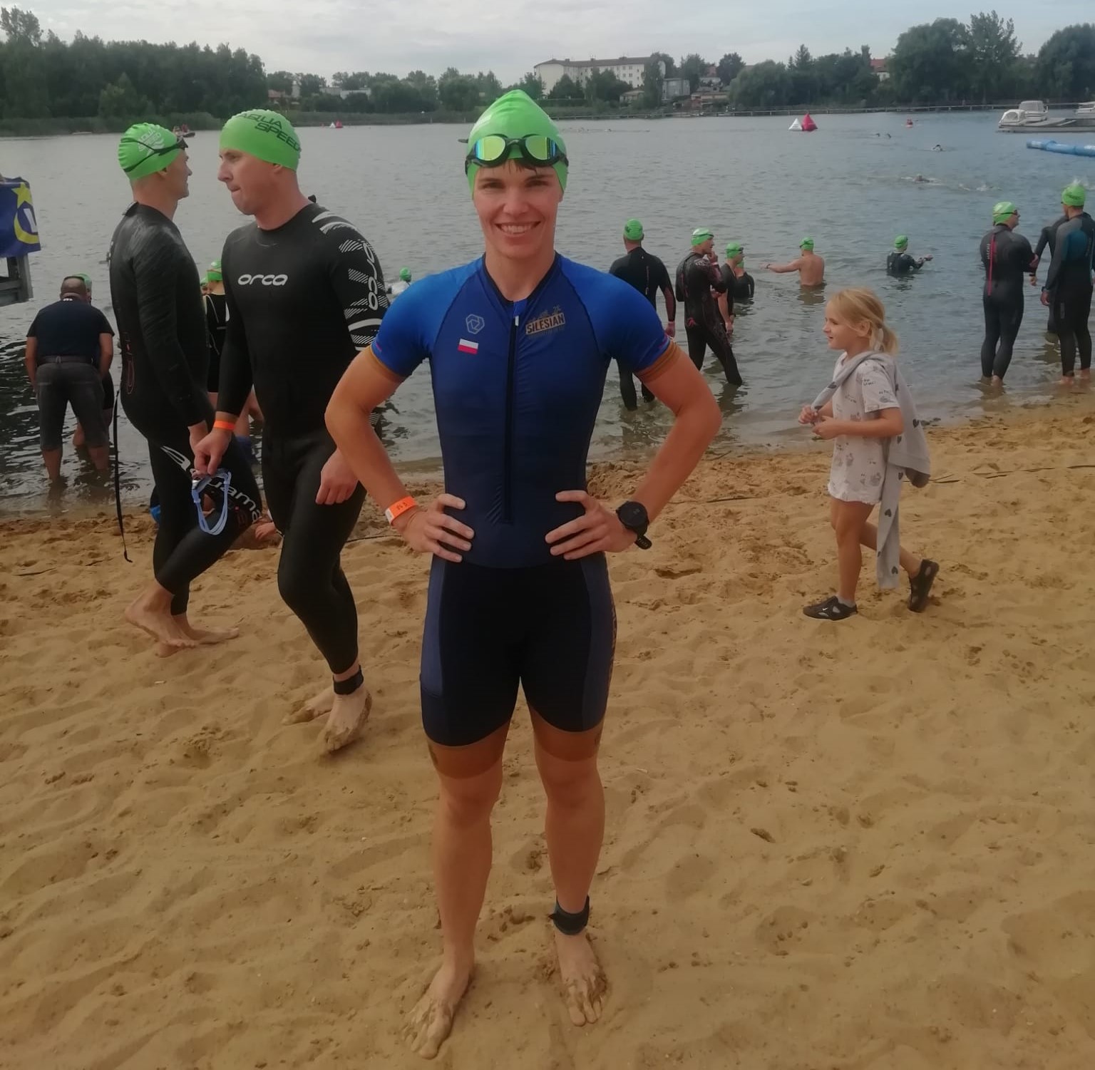 Rywalizację rozpoczynał dystans 1/4 IM o 9. Natomiast ja i reszta osób na dystansie 1/8 IM rozpoczęliśmy rywalizację o godzinie 9:30 startem z wody. Trochę się obawiałam tej początkowej "pralki" na 150 osób.