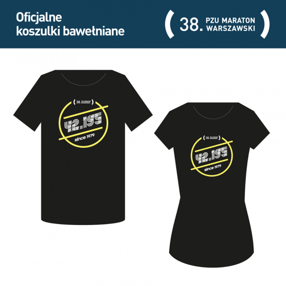 Dwa rodzaje koszulek przygotują dla biegaczy organizatorzy 38. PZU Maratonu Warszawskiego. Koszulki techniczne będą niebieskie, a bawełniane czarne. Oba rodzaje t-shirtów wzbogacone zostaną o żółte wstawki i biały napis 42.195. Since 1979. To nawiązanie do daty, kiedy pierwszy raz wystartował stołeczny maraton.