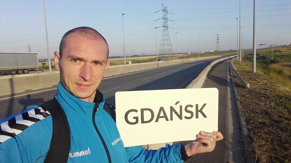 Po dwóch tygodniach istnienia profilu postanowiłem zrobić wyzwanie, w którym poprosiłem obserwujących o wysłanie mnie stopem w wybrany rejon Polski. Oni mieli w komentarzach wybrać miejsce a ja miałem udać się tam stopem, na miejscu sam sobie wyznaczyć trasę półmaratonu i później znów wrócić stopem do domu. Niektórzy byli łaskawi i proponowali okolice domu, miejscowości za Tarnowskimi Górami, okolice Częstochowy albo Kłobucka. Większość natomiast poszła na całość i wybrała Trójmiasto. Stało się! Przygotowałem tabliczki z nazwami miejscowości w tamtym kierunku i w poniedziałek 16 lipca wyruszyłem w podróż stopem do Gdańska.