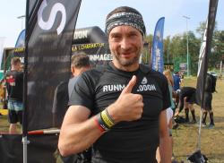 Od mety dzieli mnie jeszcze przewieszona ściana i drużyna amerykańskiego futbolu. Na tej pierwszej większość zawodników sobie nawzajem pomaga. Ambicja wspinacza zmusza mnie jednak do jej samodzielnego pokonania. Po zahaczeniu pięty i przewinięciu na drugą stronę łapie mnie skurcz w udo i na drugą stronę spadam skrzywiony z bólu. Może dlatego żywa zapora traktuje mnie dosyć łagodnie – odbiją sobie na biegu wieczornym. Około trzy i pół godziny od startu przekraczam kreskę, zapracowując na medal i szarą bandankę. Miejsce gdzieś w 1/3 stawki. Pół roboty za mną.