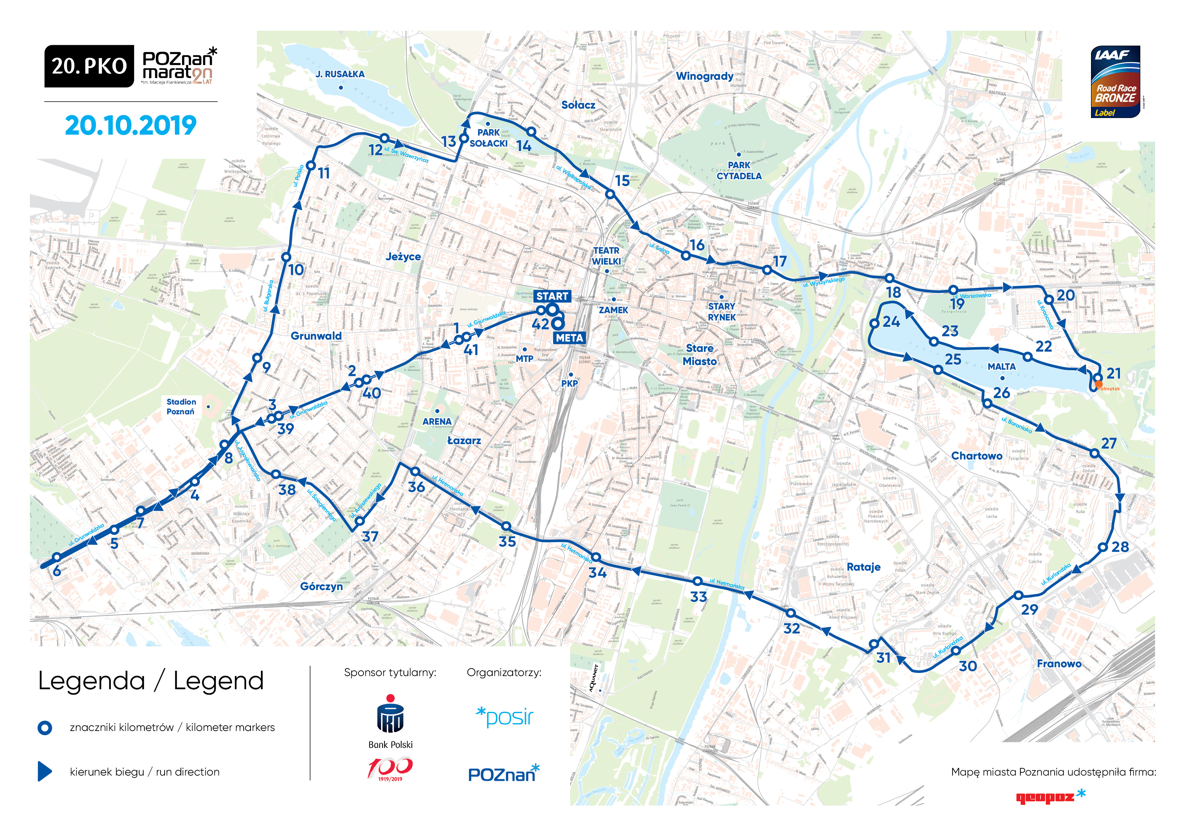 Jednocześnie informujemy, że zgodnie z wymogami Międzynarodowego Stowarzyszenia Biegów Ulicznych i Długodystansowych oraz IAAF dokładny pomiar trasy odbędzie się do 30 sierpnia br. i po tym terminie nastąpi oficjalne ogłoszenie trasy biegu. Do tego czasu w jej przebiegu mogą nastąpić drobne zmiany.