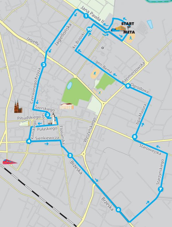 Jednakże nie tylko walory praktyczne są tu istotne. Już 28 sierpnia biegacze będą mogli naprawdę zachwycić się pięknem naszego miasta. Podczas biegu zobaczymy m.in.: Katedrę, Siedleckiego Jacka, Pałac Ogińskich, wspaniałe kamienice przy ulicy Kilińskiego, Floriańskiej, Pułaskiego czy Sienkiewicza. Będzie też czas na chwilę wytchnienia, przebiegając obok Parku Miejskiego Aleksandria.
