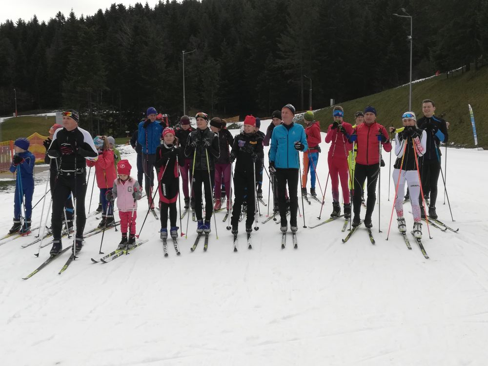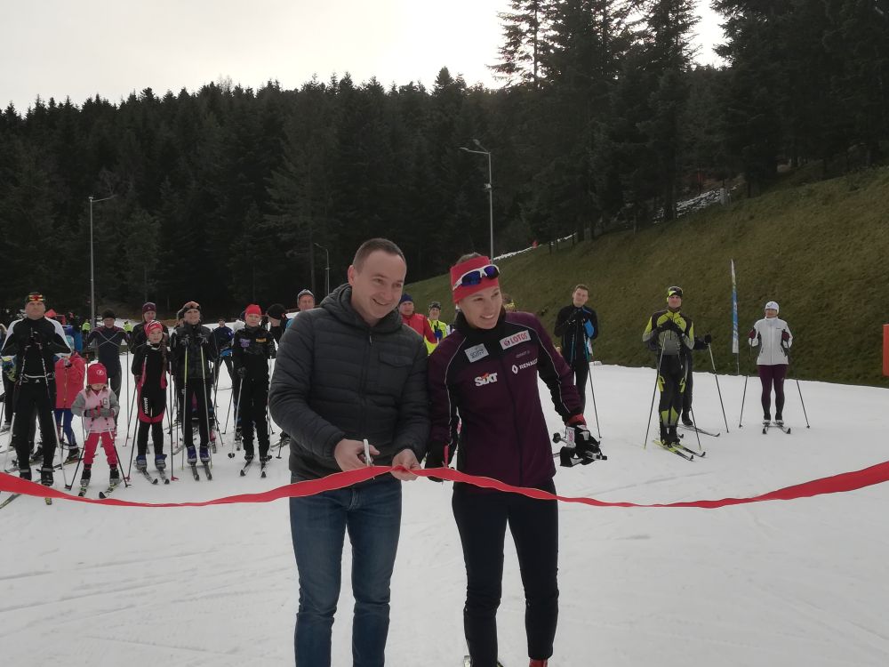 Po uroczystym przecięciu wstęgi narciarze biegowi wyruszyli na trasę. Wśród nich nie zabrakło i tych, którzy na ten czas zamienili buty na narty biegowe.