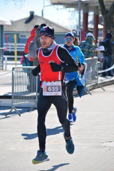 Miałem tylko nadzieje, iż nie przydarzy mi się już nic złego, poza mrozem, który panował i zimnym wiatrem. To nie przeszkadzało mi, by robić swoje. Biec, po swój mały sukces. Na trasie sporo kibiców, to mnie cały czas motywowało, by dać z siebie wszystko, ale też wiedziałem, że na mecie czeka moja Ewa. Nie chciałem, by długo czekała na szaleńca. Mnie było ciepło, ale ona tam czekała i marzła. Zbliżając się do punktu odżywczego na 11 kilometrze, przyszedł czas na jedyny żel, tak na wszelki wypadek, by nic się złego nie stało. Przecież bieg poniżej 4 min/km dla amatora to nie jest wolno. A ja chcąc walczyć o jak najlepszy czas, nie mogłem ryzykować.