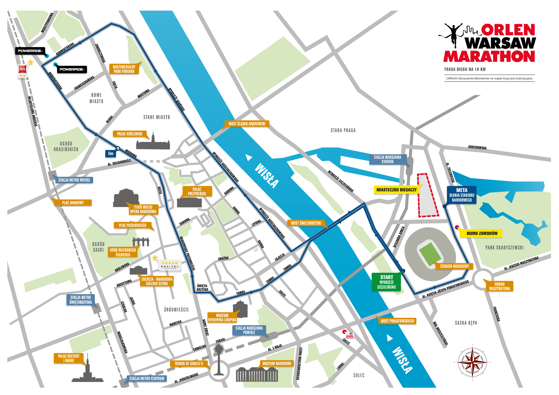 – Docierały do nas sygnały, że uczestnicy biegu na 10 km chwalili wytyczoną trasę, dlatego zdecydowaliśmy się ponownie poprowadzić bieg sprawdzonym i atrakcyjnym szlakiem. Nie zabraknie jednak ulepszeń - kierunek biegu będzie przeciwny i w związku z tym zawodnicy rywalizujący na dystansie 10 km będą mieli trasę wyłącznie do swojej dyspozycji – powiedział Leszek Kurnicki, szef komitetu organizacyjnego ORLEN Warsaw Marathon.