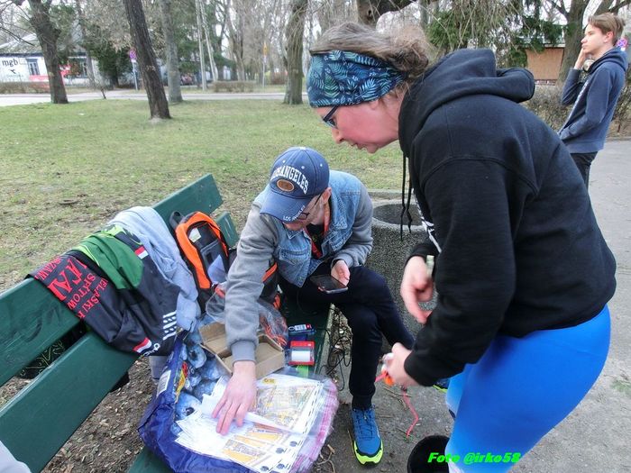 19 marca 2023 roku. Słoneczne i +18C. Późne popołudnie, Warszawa osiedle „Przyjaźń”. Plac przy Klubie „Karuzela”. Plac zapełnia się biegaczami z mapami i kompasami. Biegacze duzi i mali.