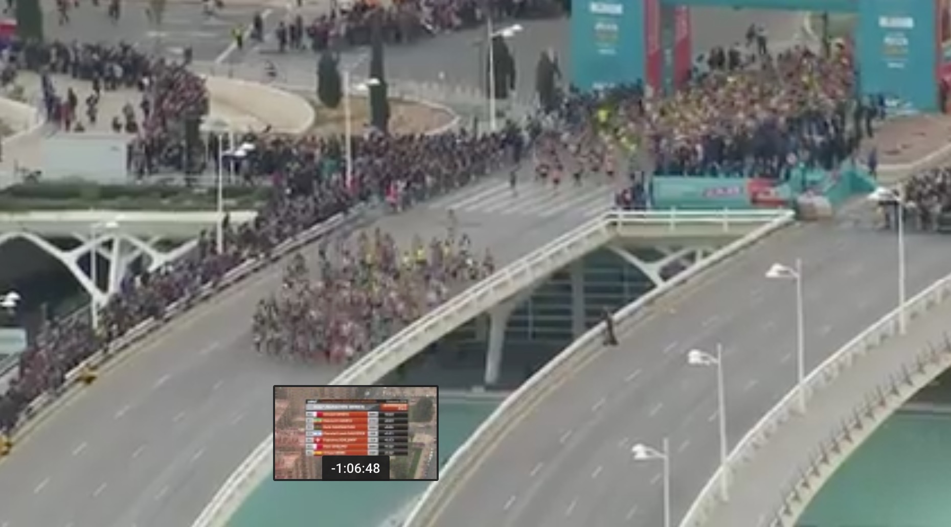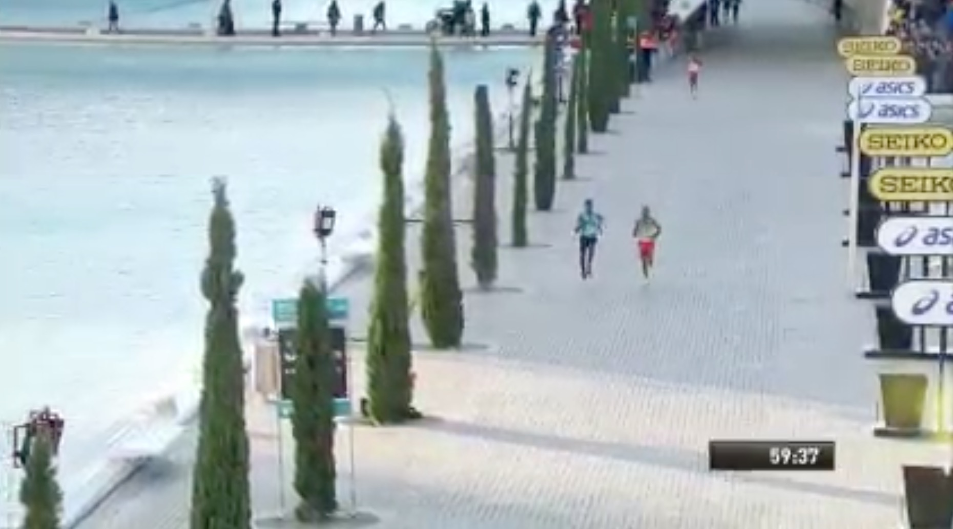 Rozpędzony pociąg nie miał zamiaru zwolnić. Na 10. kilometrze prawie 70 zawodników miało wynik poniżej 30 minut! Grupę otwierał Turek Kaan Kigen Ozbilen, ale tuż obok kroczył Geoffrey Kamworor. Po 15 km faworyt zdobył kilku metrową przewagą i nie oddał jej już do końca rywalizacji, a wręcz powiększał. Kenijczyk frunął nad mokrymi ulicami Walencji. Dystans między 15 a 20 km pokonał w fenomenalnym czasie 13:01!